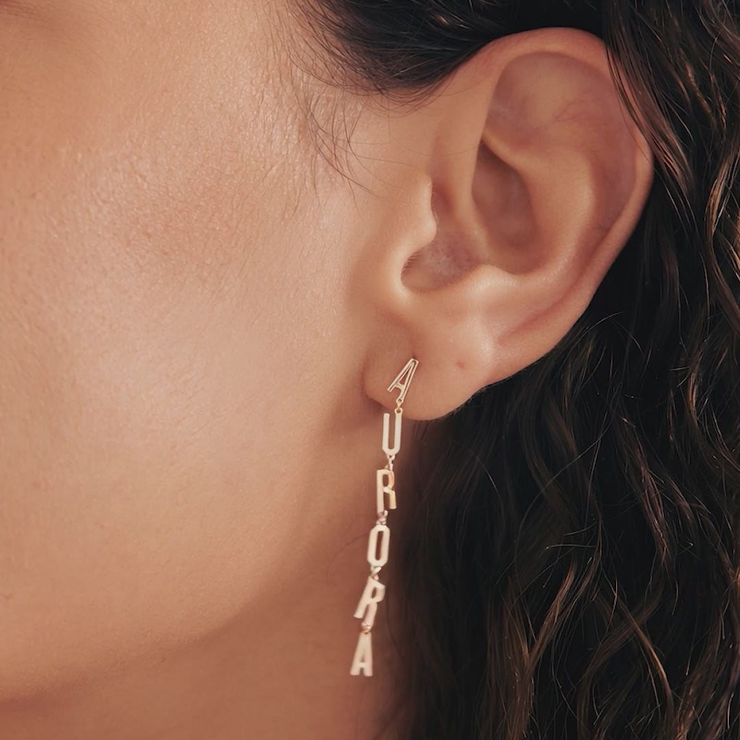 Innovate your style with our Name Dangling Earrings in 14K Solid Gold. Exquisitely crafted, these custom earrings for women are the epitome of elegance and luxury. Made from 14k yellow gold, they dangle delicately, adding a touch of sophistication to any outfit. Perfect as a gift for her, these delicate earrings are not just jewelry, but a statement of class and timeless beauty. Enjoy the shine of solid gold earrings, designed to elevate your elegance and radiate charm.