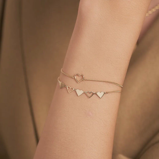 Showcase your affection with the Open Heart Bracelet in 14k Solid Gold. This elegant piece combines timeless design with luxurious craftsmanship, making it the perfect accessory for any occasion. Elevate your style with this exquisite gold bracelet today.