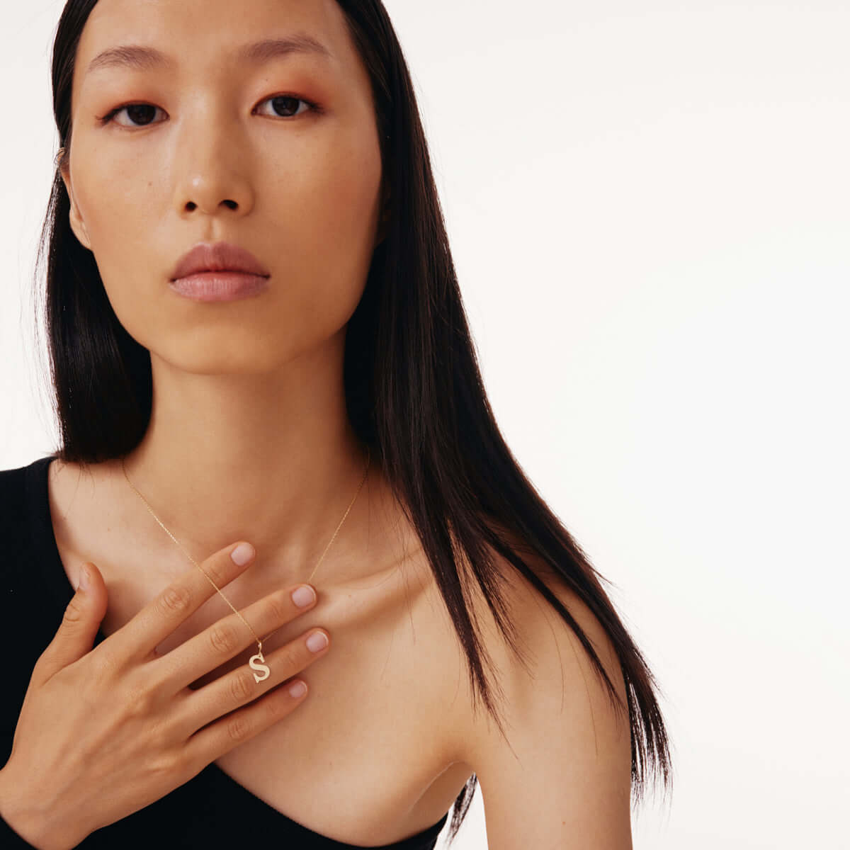 Personalized Initial Pendant Necklace 14K Solid Gold