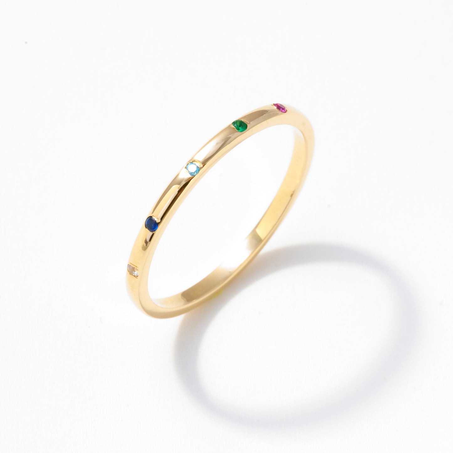 Personalized Multi-Stone Birthstone Mother's Ring 14K Solid Gold