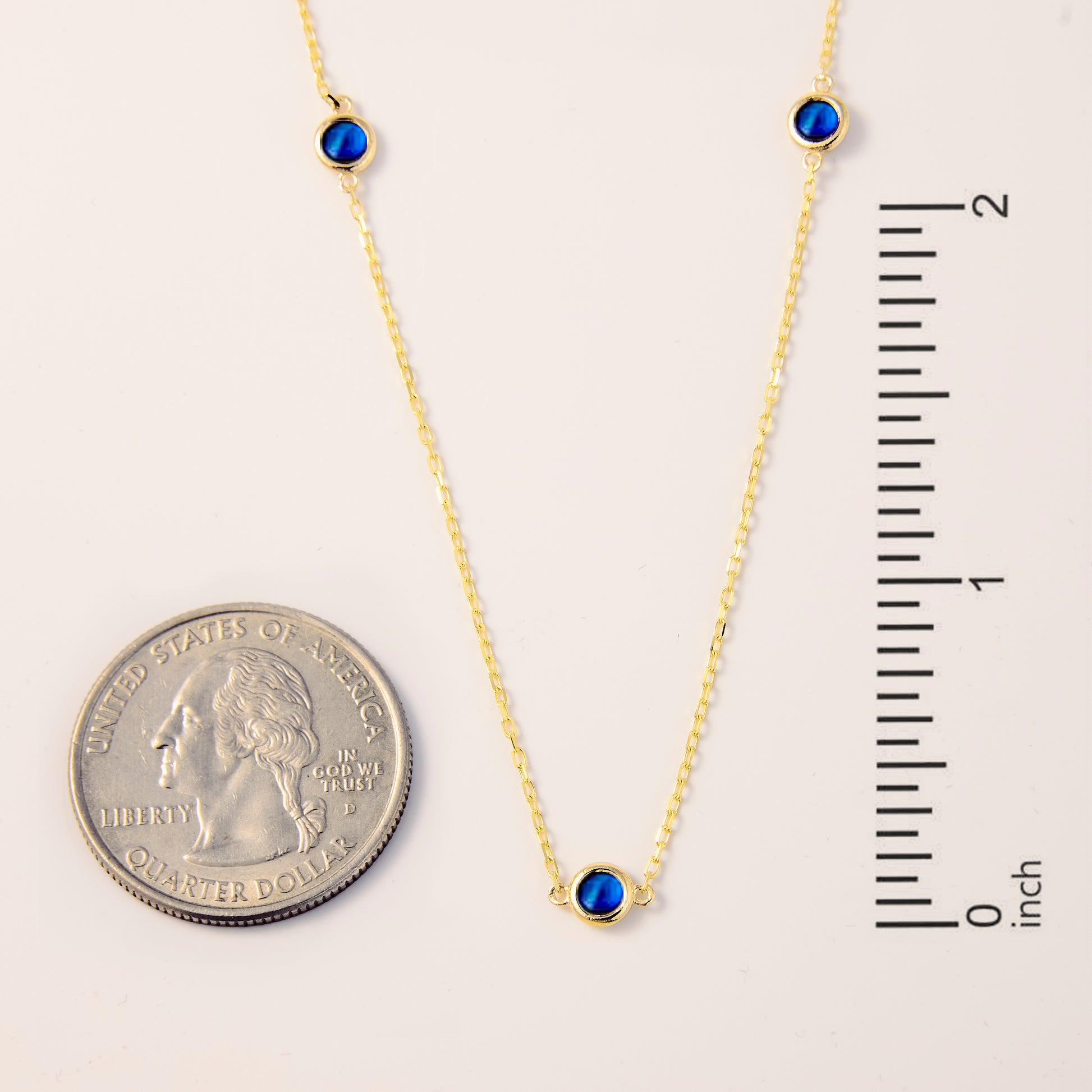Sapphire Five Stone Station Necklace 14K Solid Gold