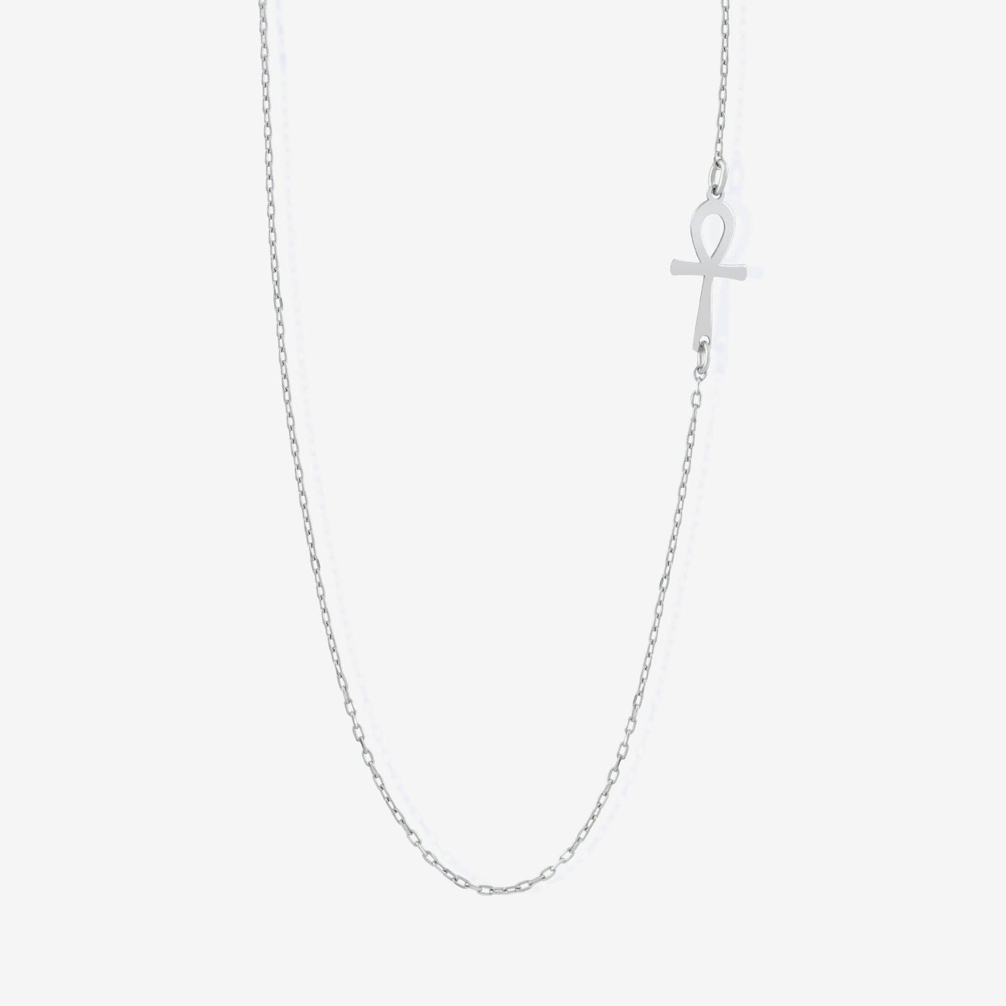 The Sideway Ankh Cross Necklace, available in 14K solid gold, is a minimalist accessory designed for women with a taste for subtle elegance. This real gold religious jewelry serves as a timeless symbol of faith, making it a perfect gift for her. Its understated design makes it a versatile piece that can be worn daily or on special occasions.
