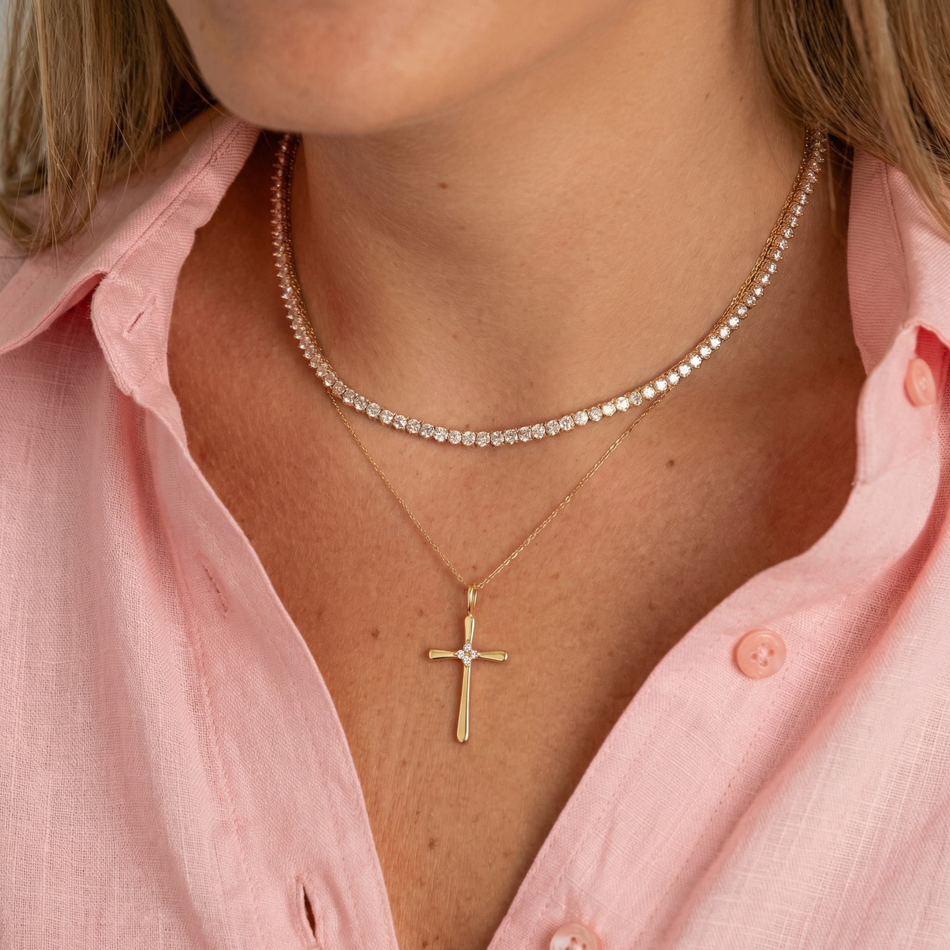 Tapered Cross Charm with Diamond Center