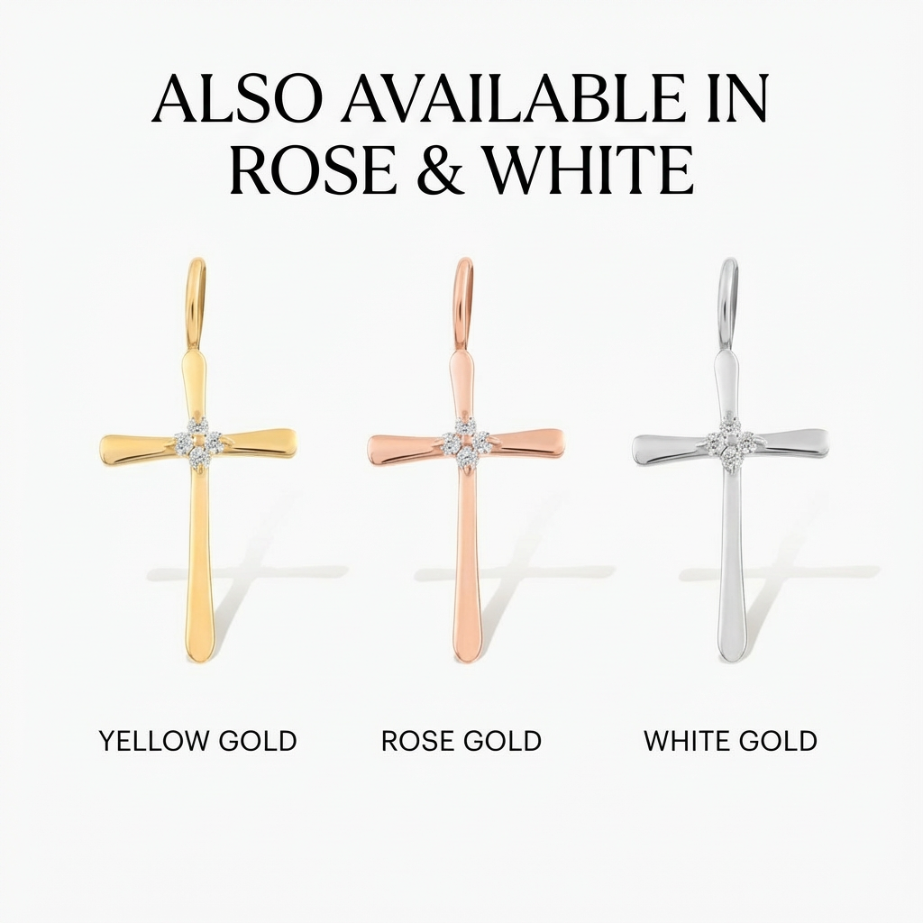 Tapered Cross Charm with Diamond Center 14K Solid Gold