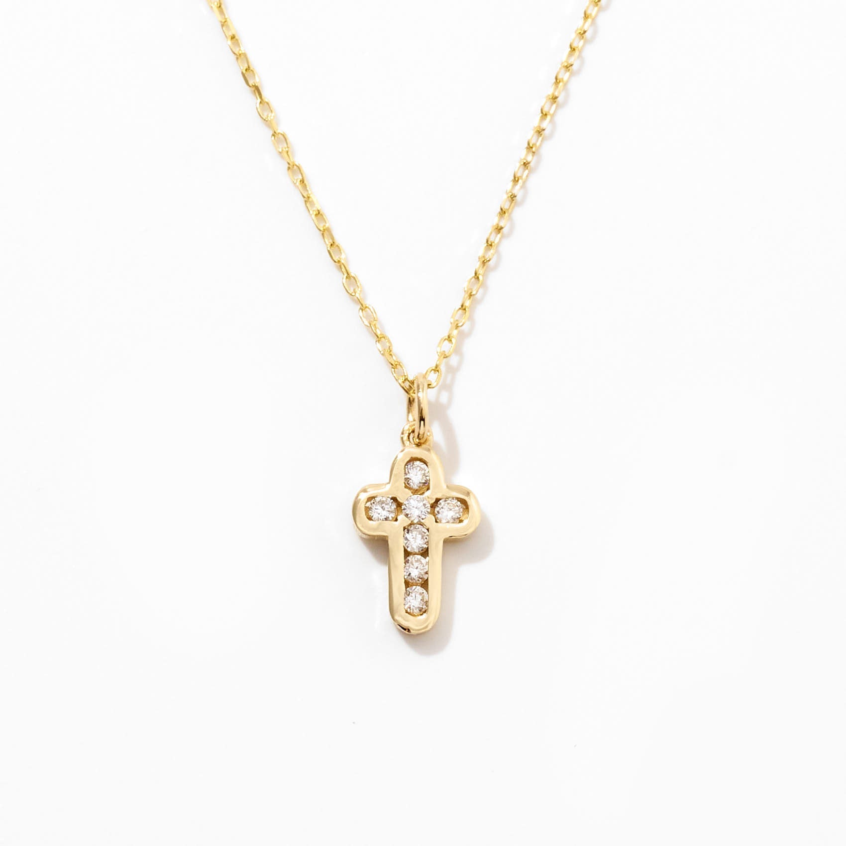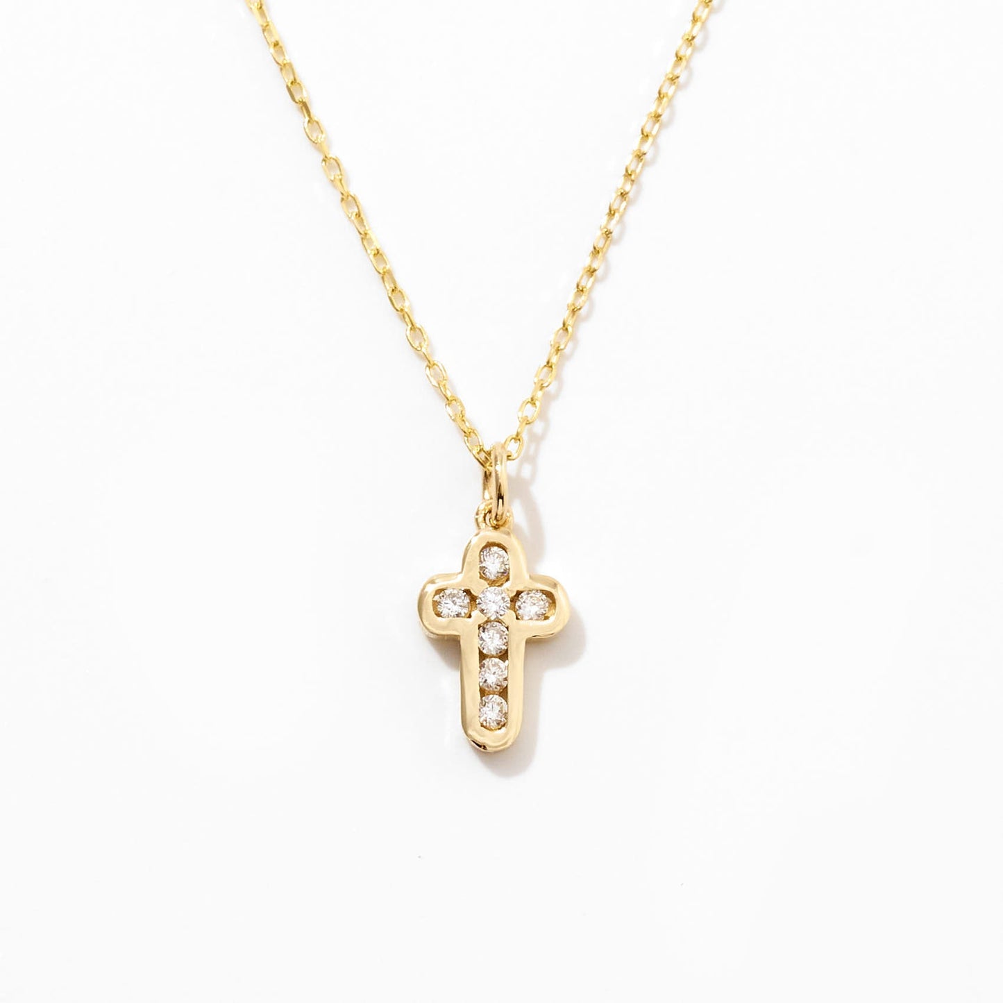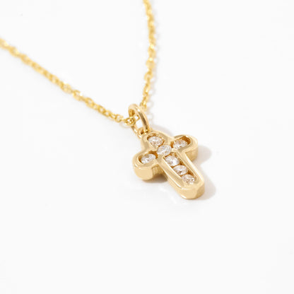 • Tiny Diamond Cross Necklace 10K Solid Gold