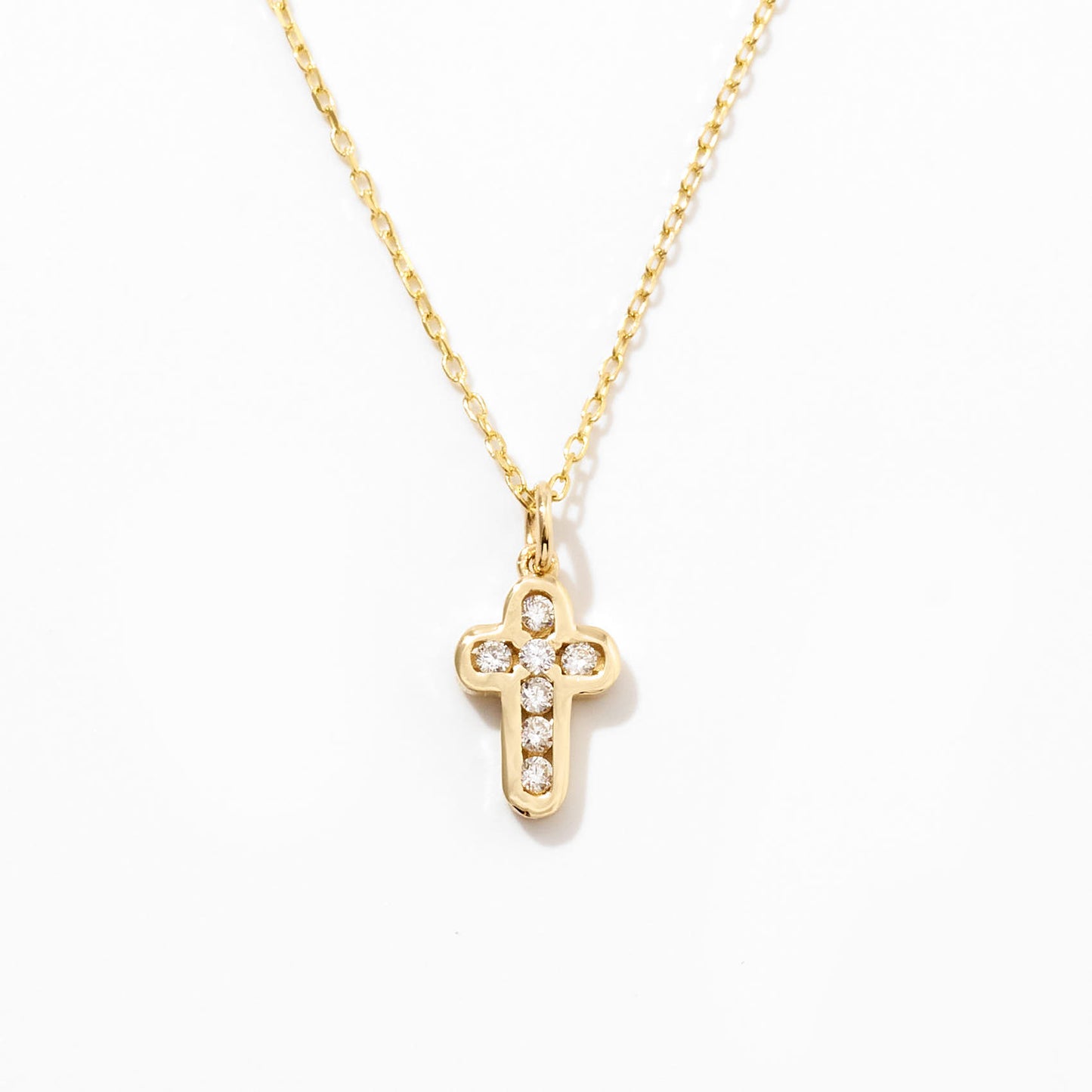 Tiny Diamond Cross Necklace 14K Solid Gold