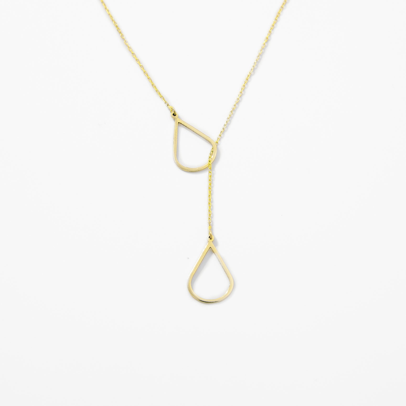 The Water Drop Y-Necklace in 14k Solid Gold elegantly captures timeless beauty with its sleek design and shimmering finish. Perfect for any occasion, this stunning necklace enhances your outfit while offering durability and luxury, making it a must-have accessory.